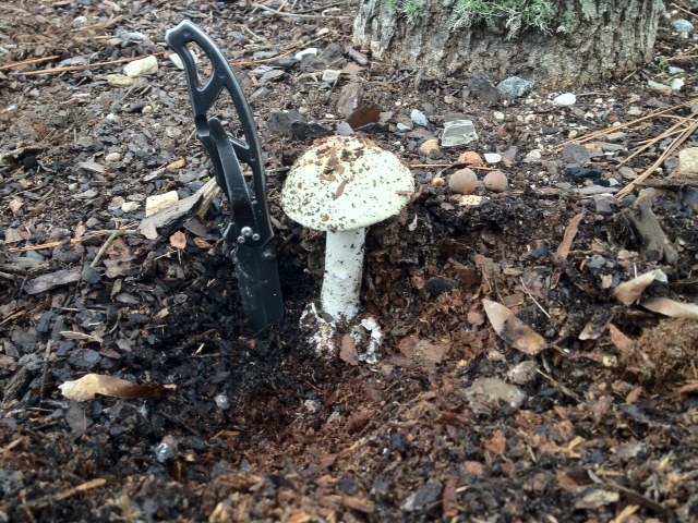 I came across this mushroom while I was depositing a check at my credit union. The willow oak in the background is in an island of asphalt, and is most likely the host for this ectomycorrhizal species. It had been warm and rainy over the previous couple of days, and I was getting mushroom vision: seeing mushrooms everywhere whether they were there or not. I had a lot of work to do to finish out the term, getting final exams ready, etc, but I knew that the mushrooms were coming up and the freeze was coming too. Fortunately I happened upon this fellow. It looked very Amanita-y from the top, warty veil remnants on the cap, brilliant white stipe, and with a little digging, you can see the volva at the base. The cap had a pale yellowish green cast to it. Weber and Smith helped get this very quickly to Amanita citrina. The volva sure enough looked like a sliced loaf of bread, and the cap smells like raw potatoes, and I got a nice white spore print from it.